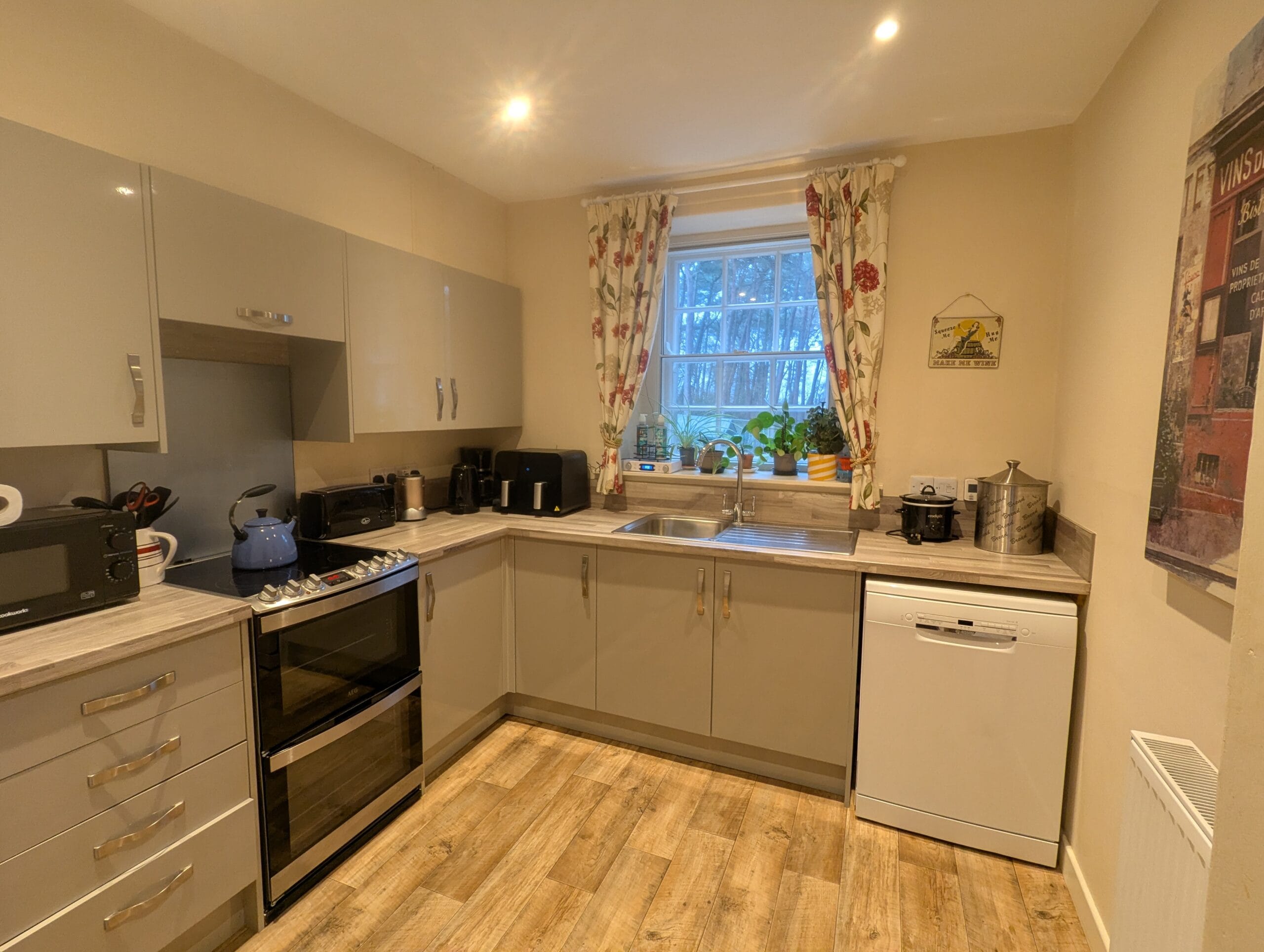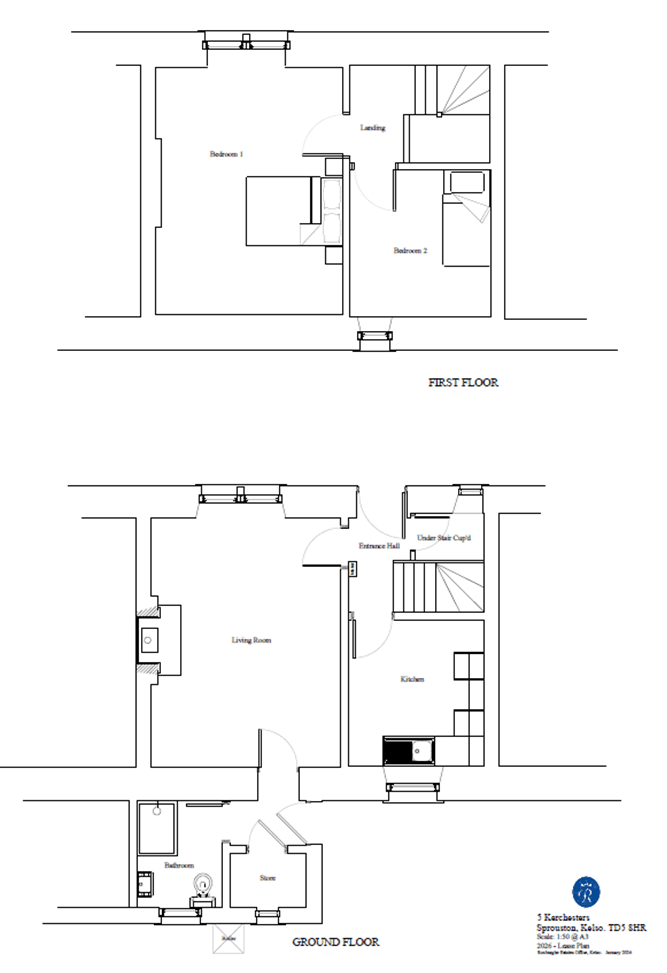 5 Kerchesters Farm Cottages, is a pretty two-bedroom mid-terrace cottage located in the quiet and peaceful setting of Kerchesters Farm just outside Sprouston, Kelso. Newly refurbished in 2023 with a new kitchen, bathroom, stove and decorated throughout this pretty cottage has a small garden space to the front and a generous space to the back, off street parking and a shed/coal store.