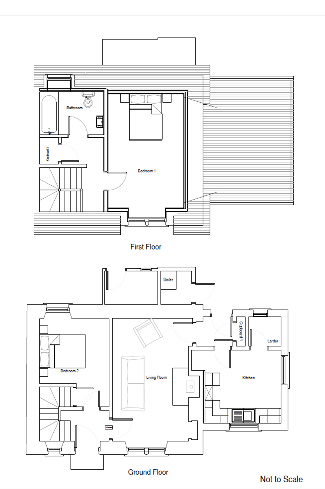 This attractive cottage features a good sized double bedroom and family bathroom with shower over bath on the first floor, a sitting room with a multi fuel stove, good sized kitchen with pantry space, a second bedroom and front and back doors on the ground floor. This property benefits from oil central heating, double gazing, generous garden space to the front and rear of the property, shed/garage and off-road parking.