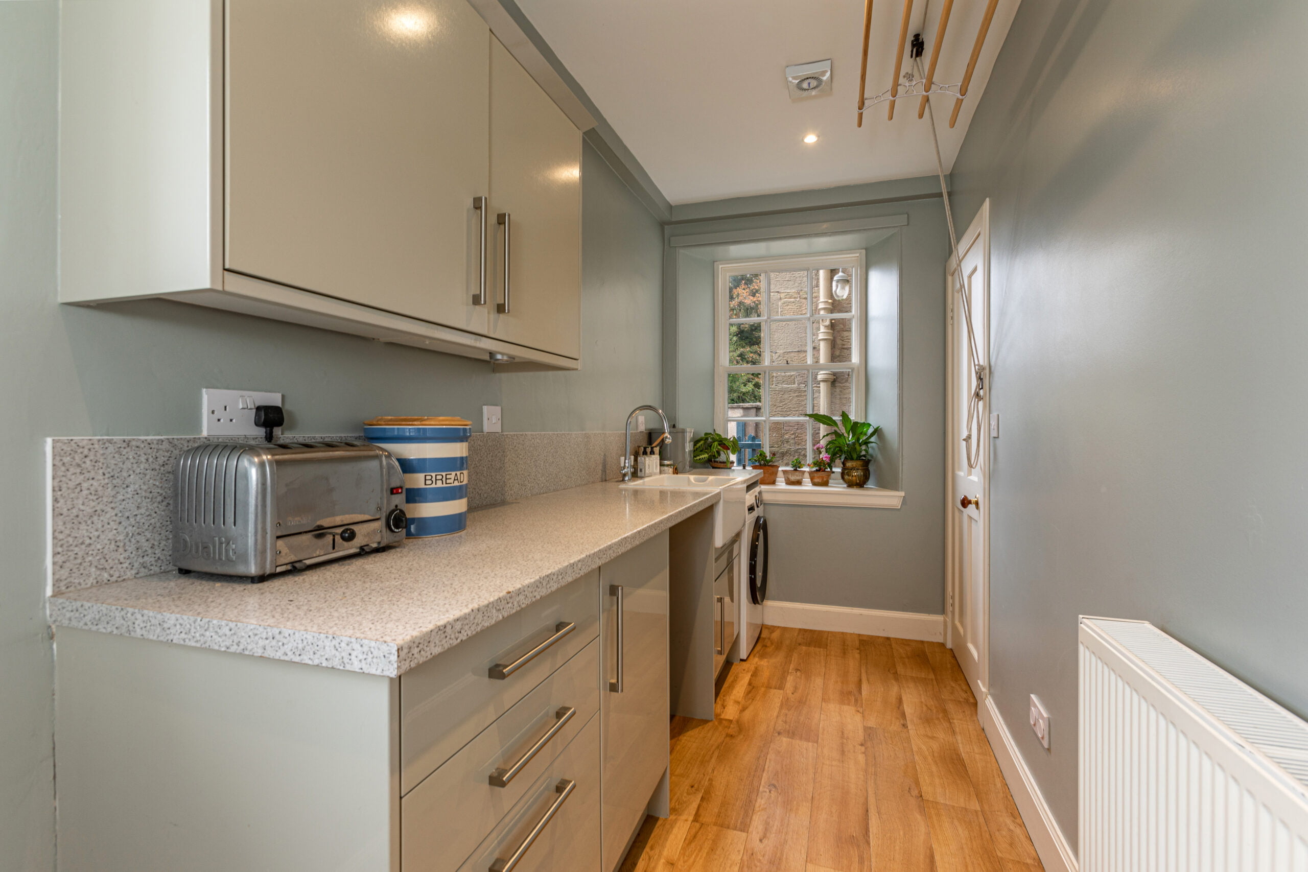A stunning detached town house near the centre of Kelso. This is a great house for entertaining both inside and out. The accommodation on the ground floor comprises an entrance hall, two reception rooms (one with a multi fuel stove), kitchen with gas fired range, large utility room and downstairs WC. On the first floor are four bedrooms, one with an en-suite bathroom, as well as an additional family bathroom. Gas fired central heating throughout. Spacious, tranquil and private garden.